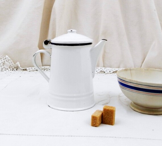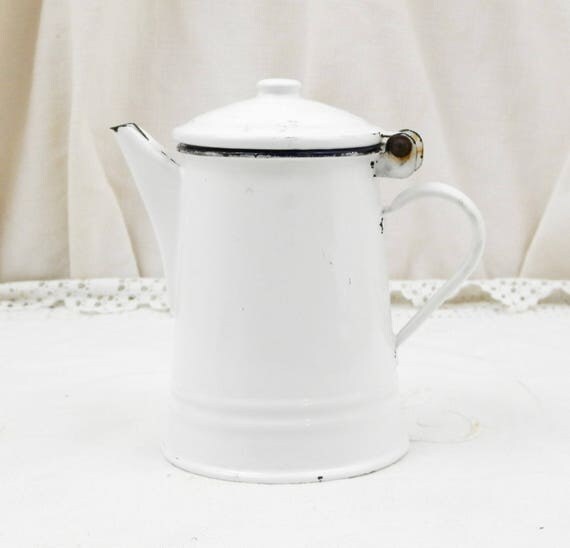 20% OFF coupon on Small Vintage White Enamelware Coffee Pot / Cafetière, Child's Toy Made in Eastern Europe, French Country Decor, Cottage Kitchen Enamel by VintageDecorFrancais