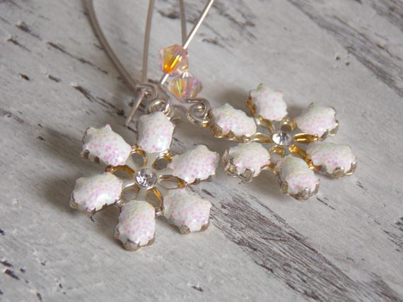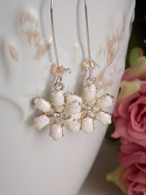 FREE SHIPPING coupon on Snowflake Earrings, Holiday Jewelry, Christmas Earrings, Winter Jewelry, Glass Enamel Glitter Shimmer Earrings, Festive Jewelry by NickiLynnJewelry