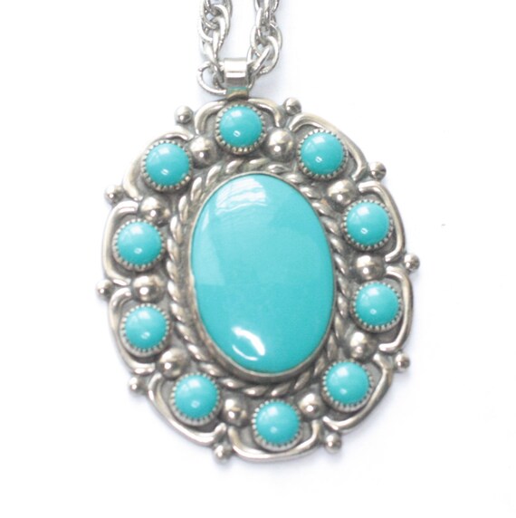 15% OFF coupon on Southwestern Style Pendant Necklace Faux Turquoise Bell Trading Company Vintage by PastSplendors