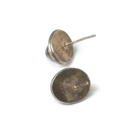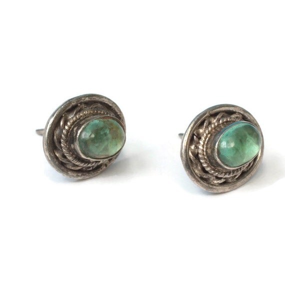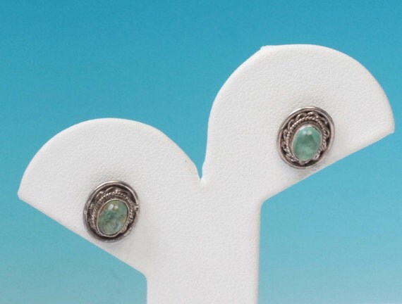 15% OFF coupon on Sterling and Blue Green Glass Oval Earrings Posts Vintage Smaller