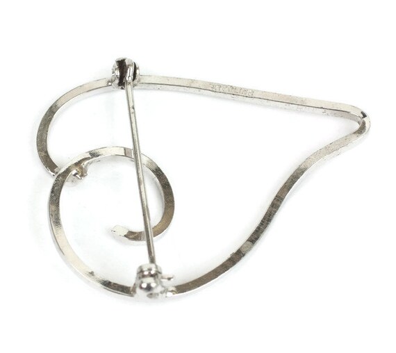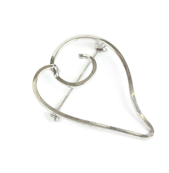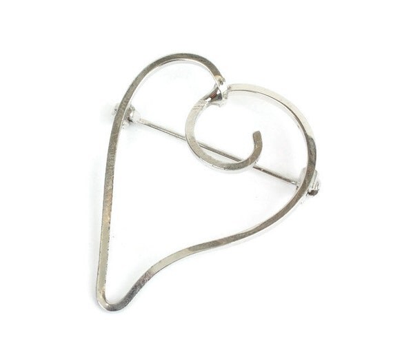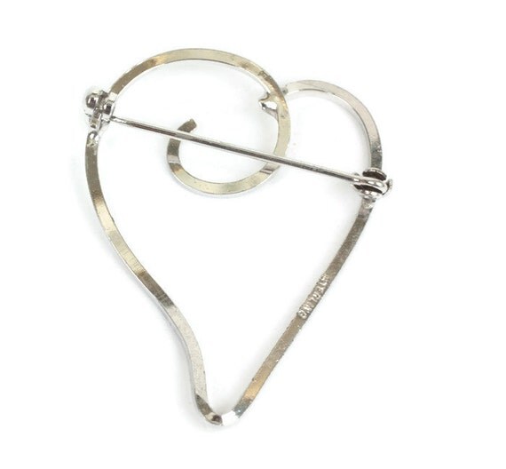 15% OFF coupon on Sterling Modernist Heart Brooch Pin Sleek Simple Vintage