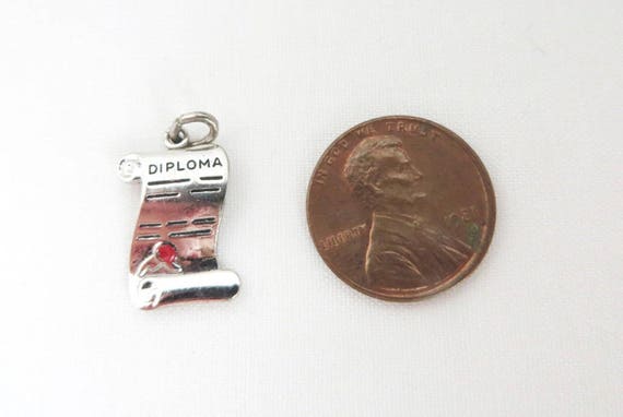 15% OFF coupon on Sterling Silver Diploma Charm, Vintage Wells Sterling, Charm Bracelet Gift for Graduation by LeesVintageJewels