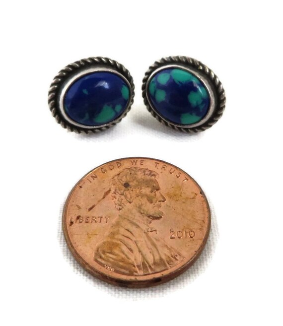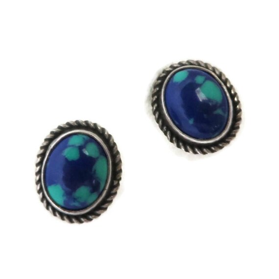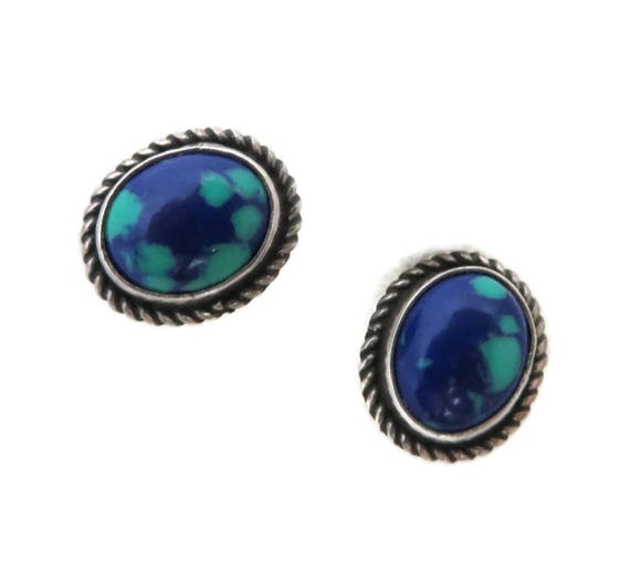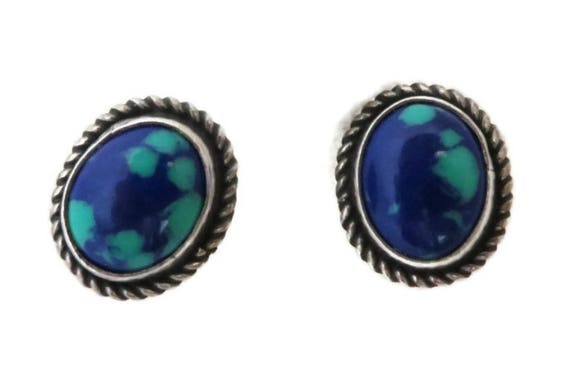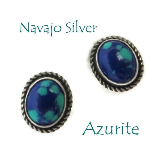 15% OFF coupon on Sterling Silver Earrings, Azurite Pierced Earrings, Native American Sterling Silver Studs, Vintage Braided Pierced Earrings, Gift for Her by LeesVintageJewels
