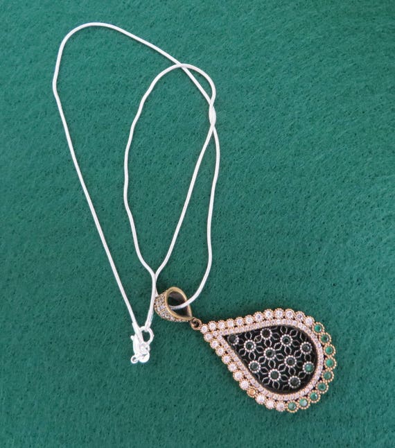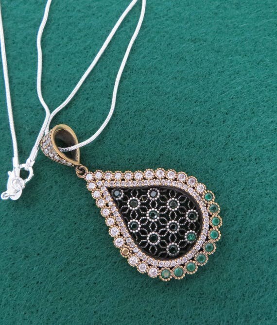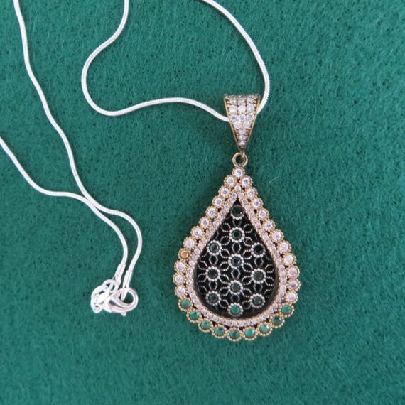 15% OFF coupon on Sterling Silver Emerald Pendant - Vintage Teardrop Gemstone Pendant Necklace, Gift for Her by LeesVintageJewels