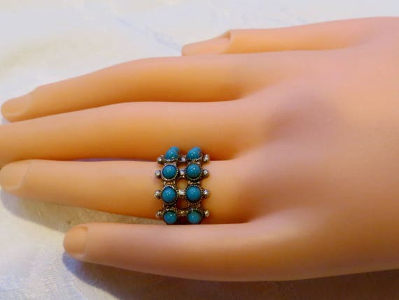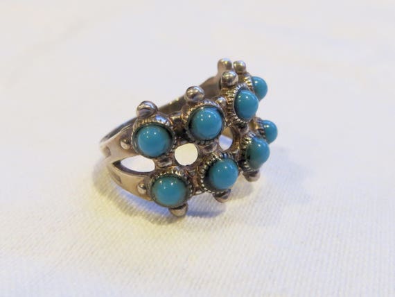 20% OFF coupon on Sterling Snake Eyes Ring, Southwest Style Vintage Ring, Native American, Turquoise Snake Eyes, Size 6 Ring by VintageVogueTreasure