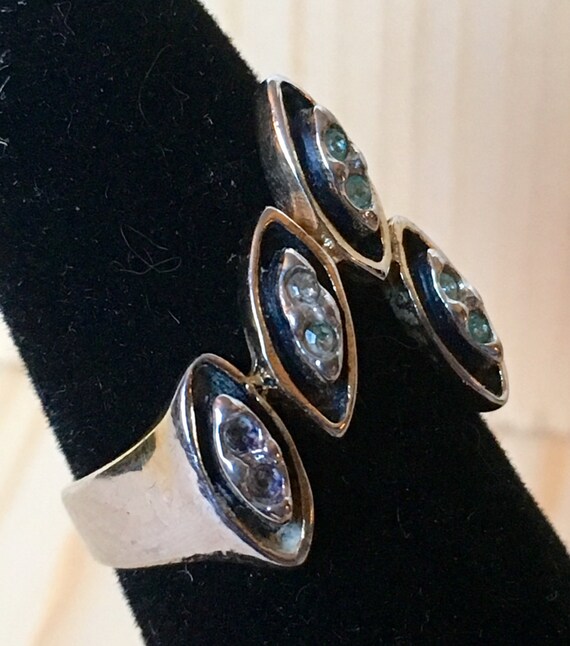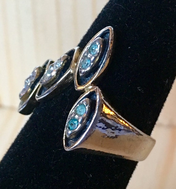 10% OFF coupon on Storewide 25% Off SALE Vintage 14k Gold Electroplate Baby Blue Rhinestone Cocktail Ring Featuring Artistic Modern Design by ClevelandFinds