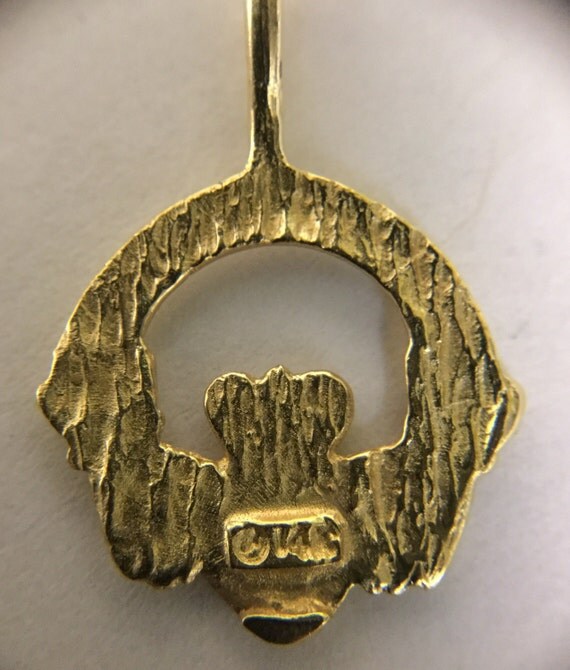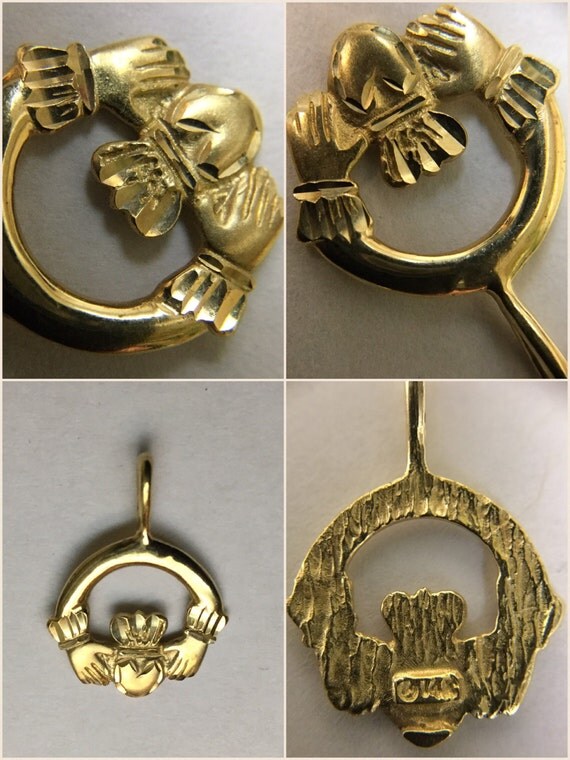 10% OFF coupon on Storewide 25% Off SALE Vintage 14k Yellow Gold Irish Claddagh Petite Style Necklace Pendant Featuring Highly Detailed Design Finish by ClevelandFinds