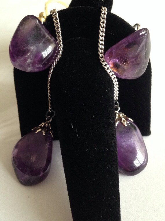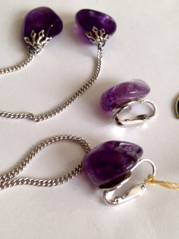 10% OFF coupon on Storewide 25% Off SALE Vintage Art Deco Silver Tone Amethyst Necklace & Matching Amethyst Clip Earrings Set With Genuine Deep Purple Stones by ClevelandFinds