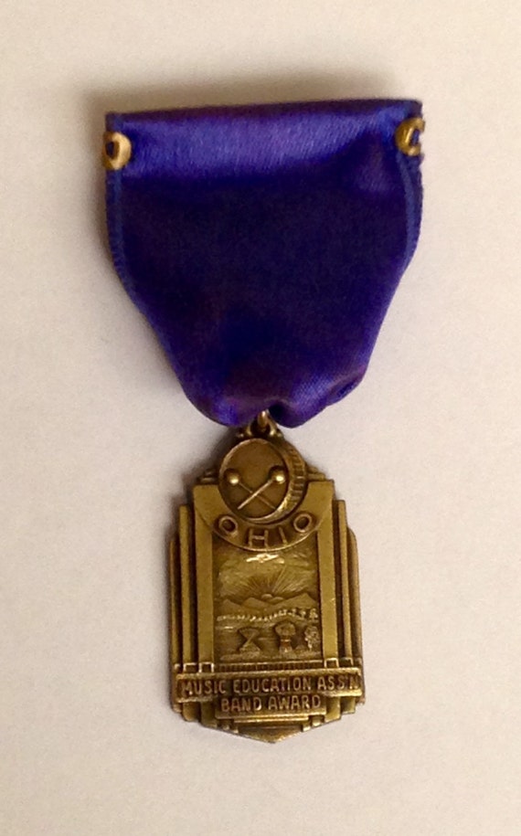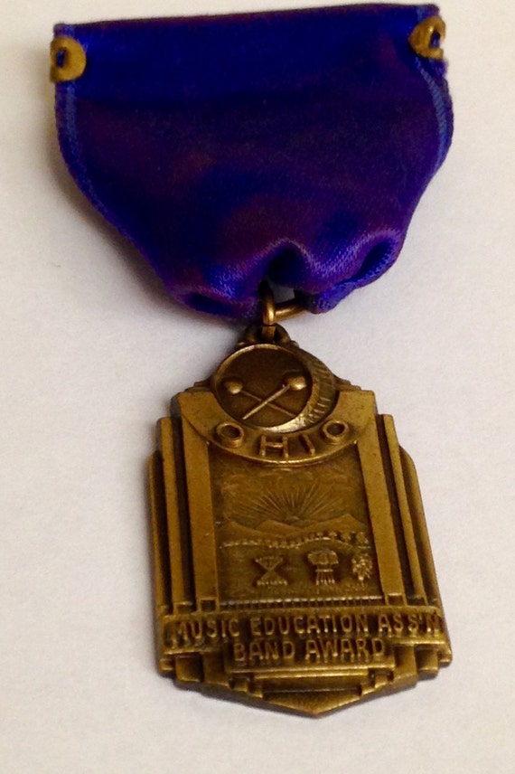 10% OFF coupon on Storewide 25% Off SALE Vintage Bronze Tone Ohio's Music Educational Association Band Award Pin Featuring Purple Silk Style Banner by ClevelandFinds