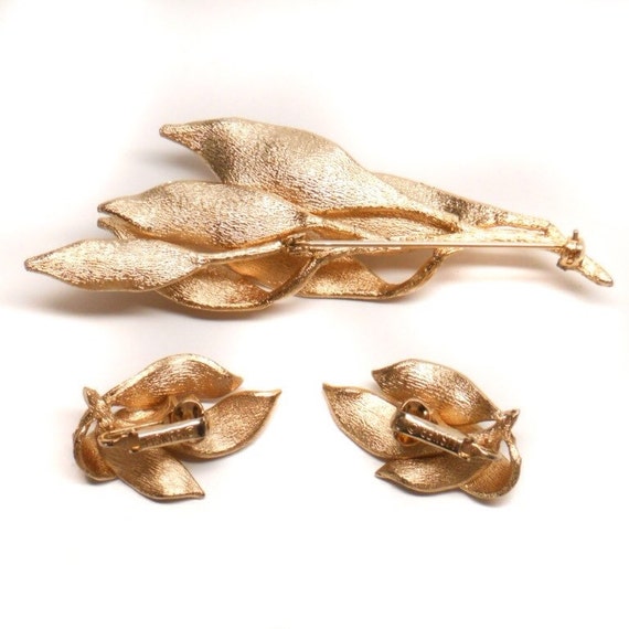 10% OFF coupon on Storewide 25% Off SALE Vintage Brushed Gold Tone Lisner Designer Signed Matching Leaf Cluster Cocktail Brooch & Earring Set Featuring Textur by ClevelandFinds