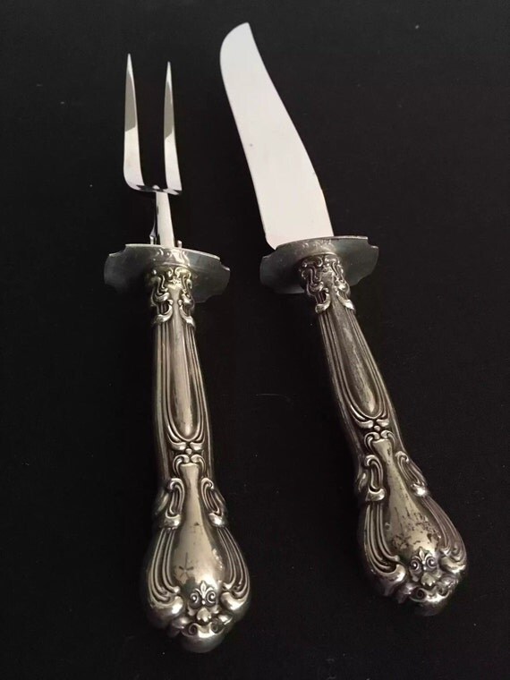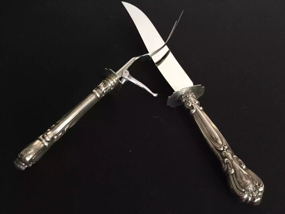 10% OFF coupon on Storewide 25% Off SALE Vintage Buckingham 1910 Gorham Sterling Silver French Blade Carving Knife & Meat Fork Set Featuring Timeless Inscribe by ClevelandFinds