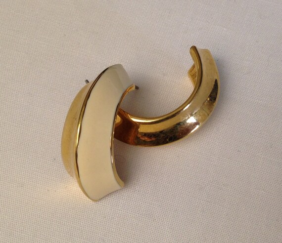 10% OFF coupon on Storewide 25% Off SALE Vintage Gold Tone Monet Designer Signed Pierced Earrings Featuring Elegant Cream Enamel Accented Design by ClevelandFinds