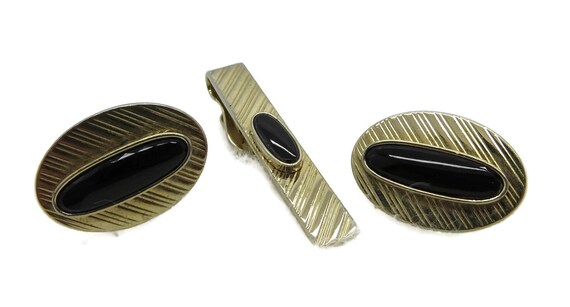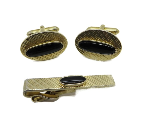 15% OFF coupon on Swank Cufflinks Set, Vintage Onyx Cufflinks Tie Clip, Gold Tone Cufflink Set, Men's Suit Accessory, Gift for Him by LeesVintageJewels
