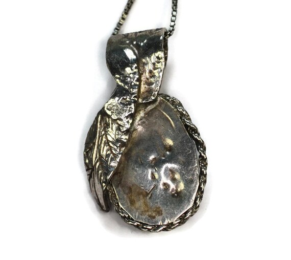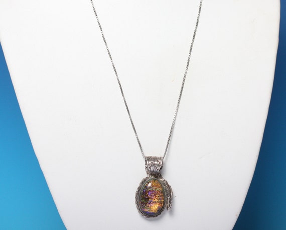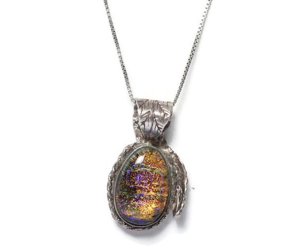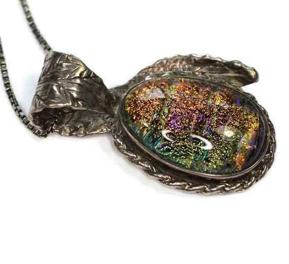15% OFF coupon on Topaz Green Dichroic Glass Sterling Pendant NA Style Necklace Art Glass Vintage by PastSplendors