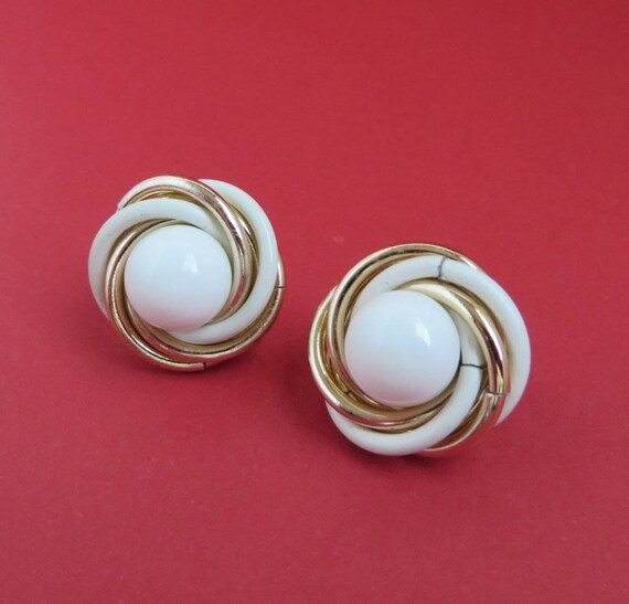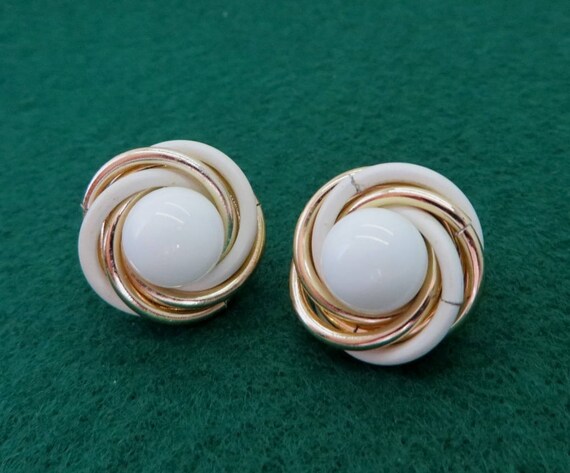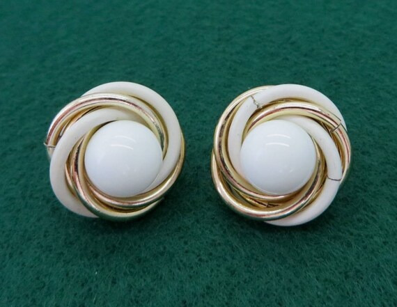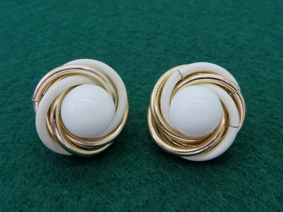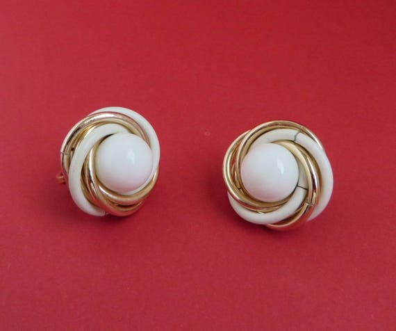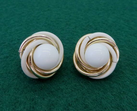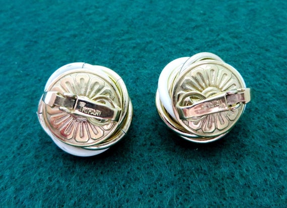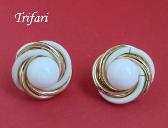 15% OFF coupon on Trifari White Gold Earrings - Vintage Designer Signed Swirl Clip-on Earrings by LeesVintageJewels