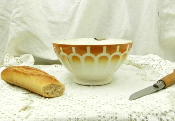 20% OFF coupon on Very Big French Antique Chippy Café au Lait Bowl / Coffe Bowl / Cottage Kitchenware / French Country Decor / Retro Vintage Home Interior by VintageDecorFrancais
