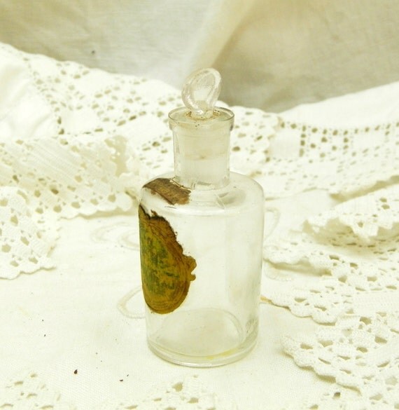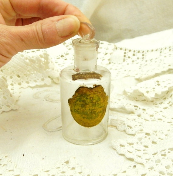 20% OFF coupon on Very Small Antique French Glass Medicine Bottle / Perfume Bottle with a Glass Stopper / French Country Decor / Shabby Chic / Apothecary by VintageDecorFrancais