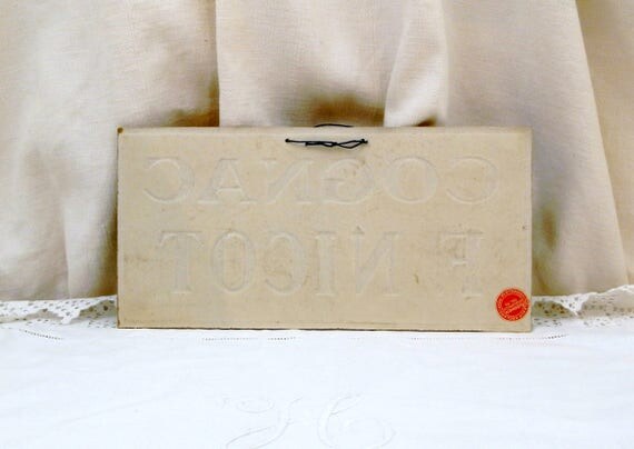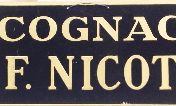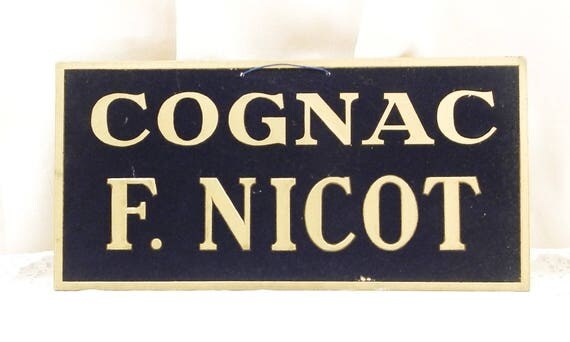 20% OFF coupon on Vintage 1940s Blue and White Cognac Promotional Sign from France Cognac F Nicot, French Publicity Advertising Barmania by VintageDecorFrancais