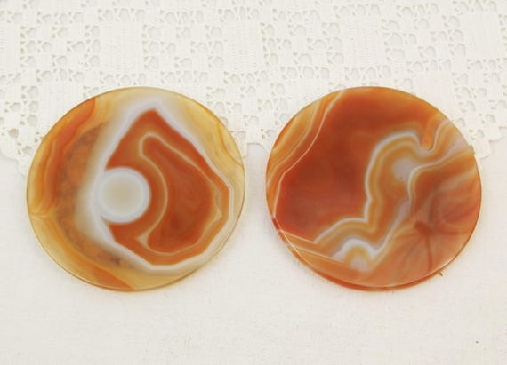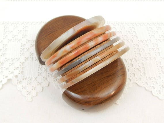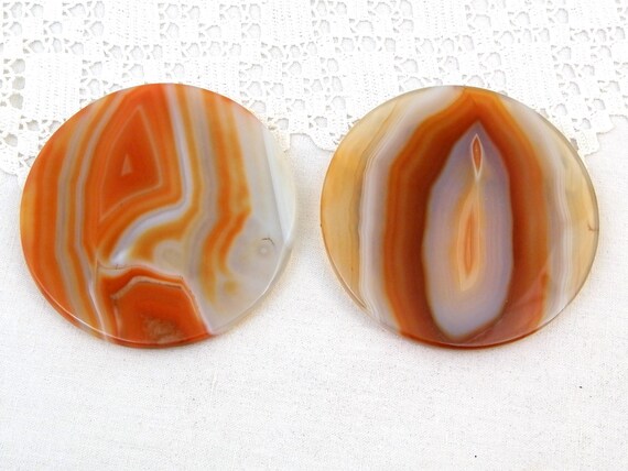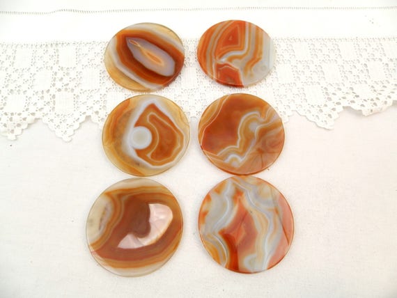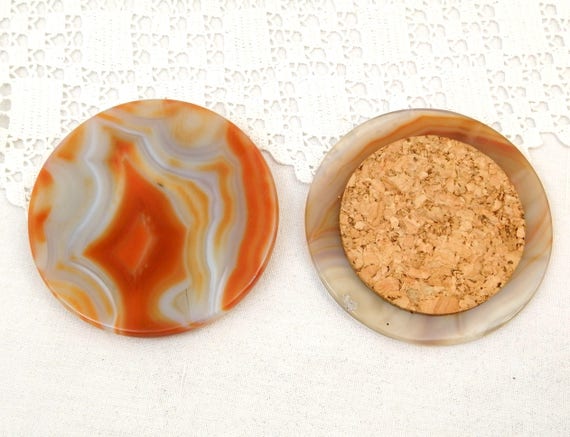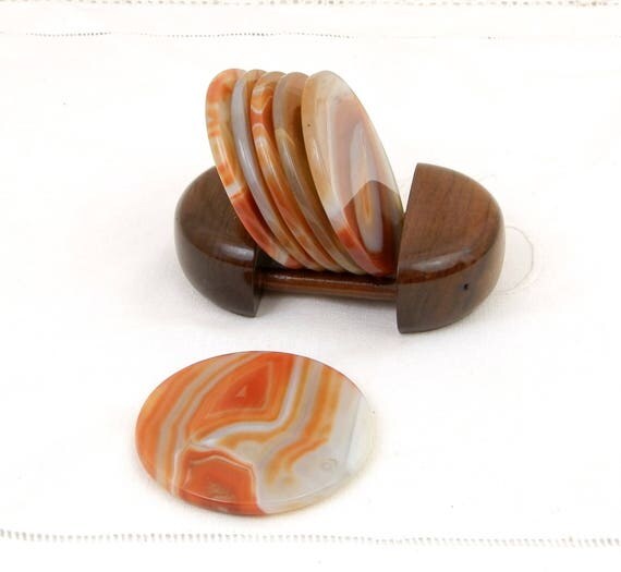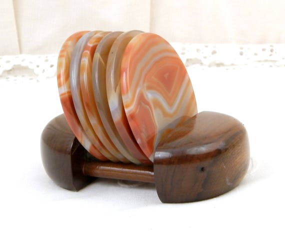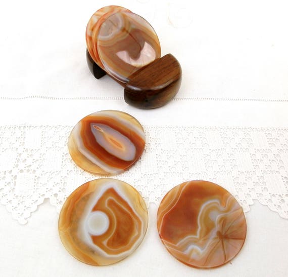 20% OFF coupon on Vintage 6 Round Onyx / Agate Orange and White Polished Stone Drinks Coasters with Stacking Rack, Retro Home Interior, Entertaining, Barware by VintageDecorFrancais