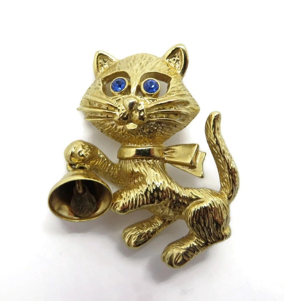 15% OFF coupon on Vintage AVON Cat Brooch, Gold Tone Kitten, Bell Pin, 1980s Jewelry, Gift for Her, Gift Boxed by LeesVintageJewels