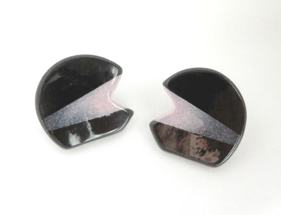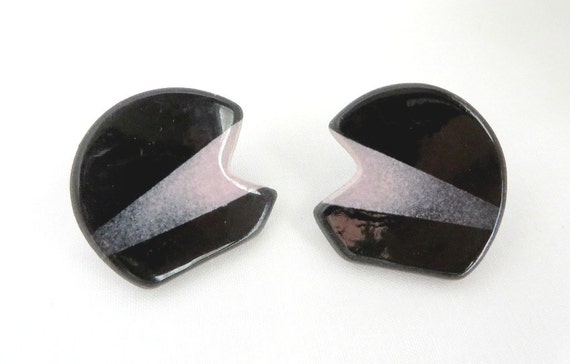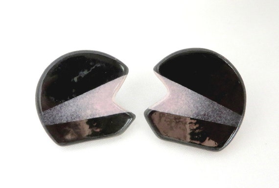 15% OFF coupon on Vintage Black and Pink Enamel Earrings, Artisan Studs