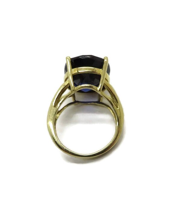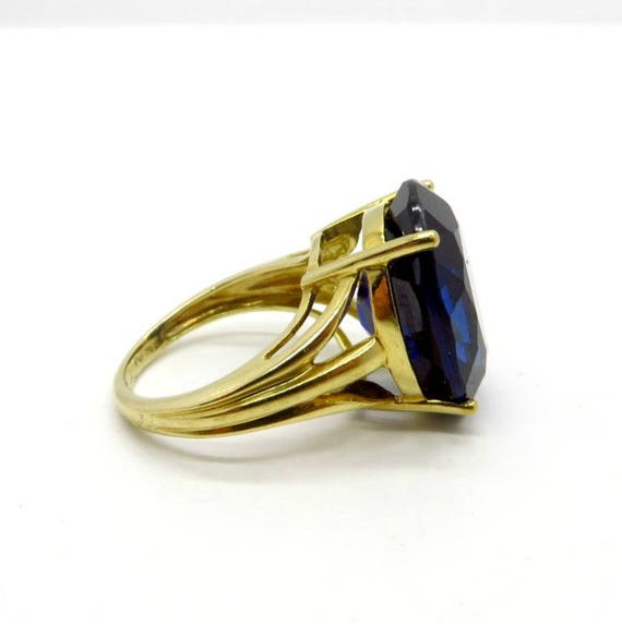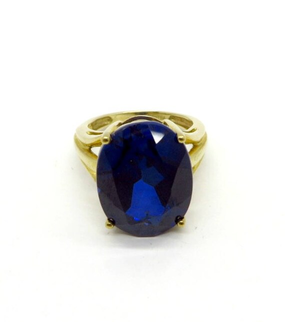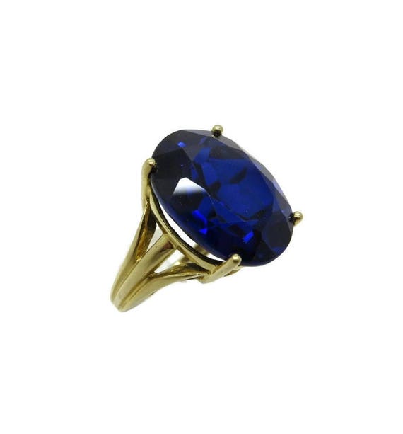 15% OFF coupon on Vintage Blue Spinel Solitaire Ring, 10K Gold Synthetic Spinel Ring, Sapphire Blue Statement Ring, Engagement Ring, Size 4 by LeesVintageJewels