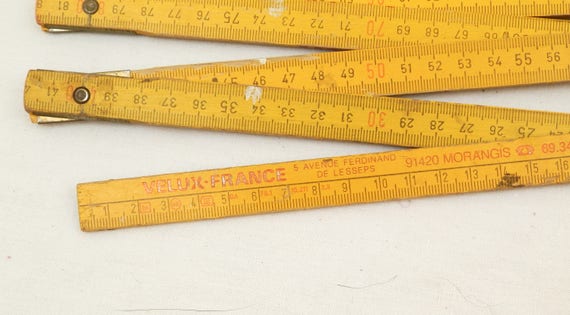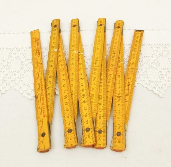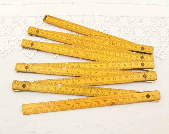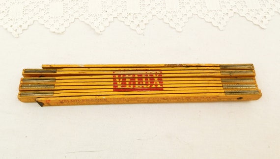 20% OFF coupon on Vintage Bright Yellow Wooden Folding 2 Meter Tape Measure Publicity Gift by Velux-France, French Measuring Stick, Upcycle Christmas by VintageDecorFrancais