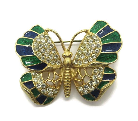 30% OFF coupon on Vintage Brooch - Weiss Butterfly Brooch, Enamel Butterfly Pin, Rhinestone Butterfly Brooch, Blue and Green Pin, FREE SHIPPING by LeesVintageJewels