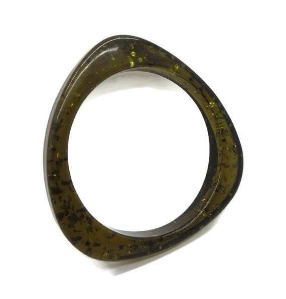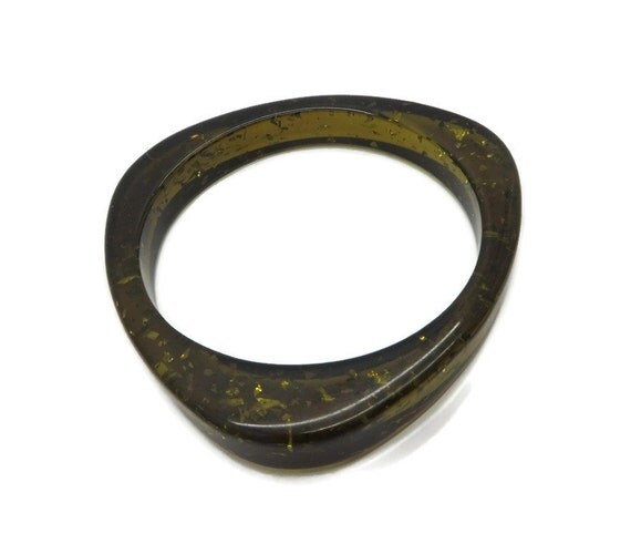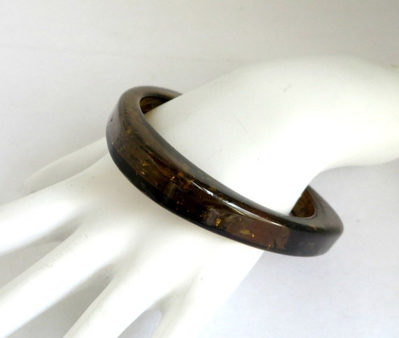 20% OFF coupon on Vintage Brown Lucite Triangle Bangle, Gold Speckled Bangle, Transluscent Sparkly Bracelet by LeesVintageJewels