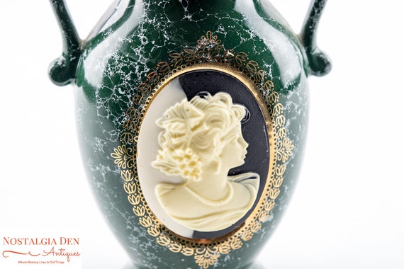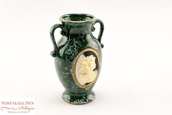 15% OFF coupon on Vintage Ceramic Cameo Vase | Mt Clemens Pottery | Green Marbled Vase by NostalgiaDenClassics