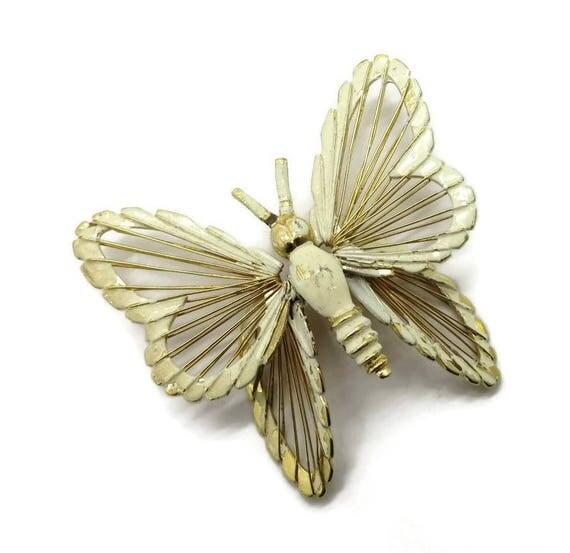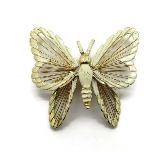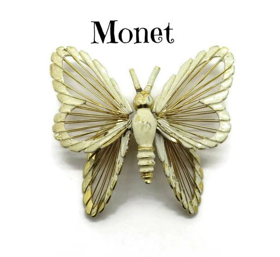 15% OFF coupon on Vintage Cream Butterfly Brooch - Monet Cream Enamel Pin, Gold Tone 1960s, Insect Pin, Gift Box by LeesVintageJewels