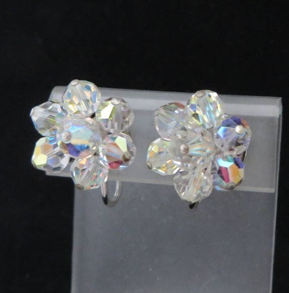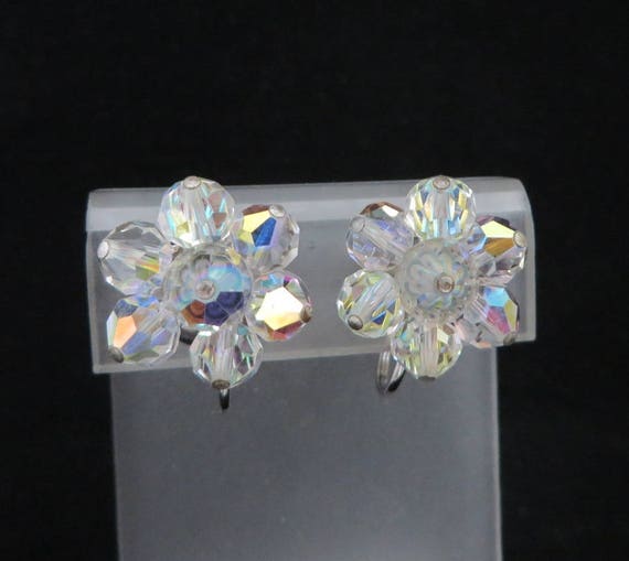 15% OFF coupon on Vintage Crystal Flower Earrings | Silver Tone Cluster Clip-on Earrings by LeesVintageJewels