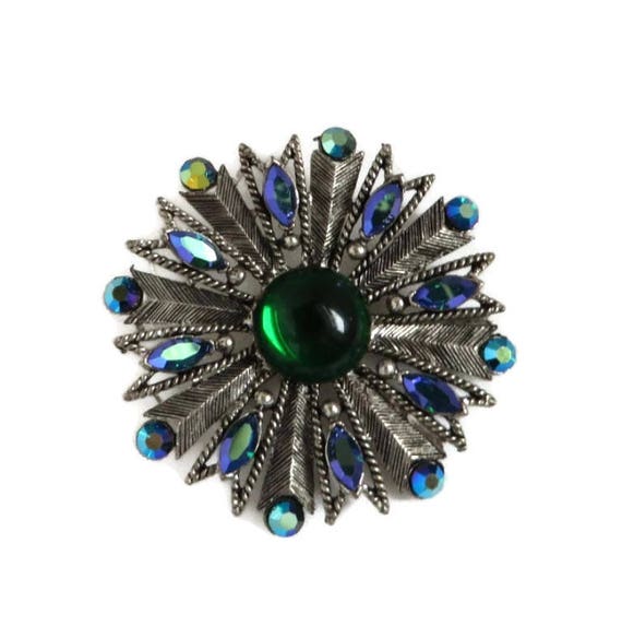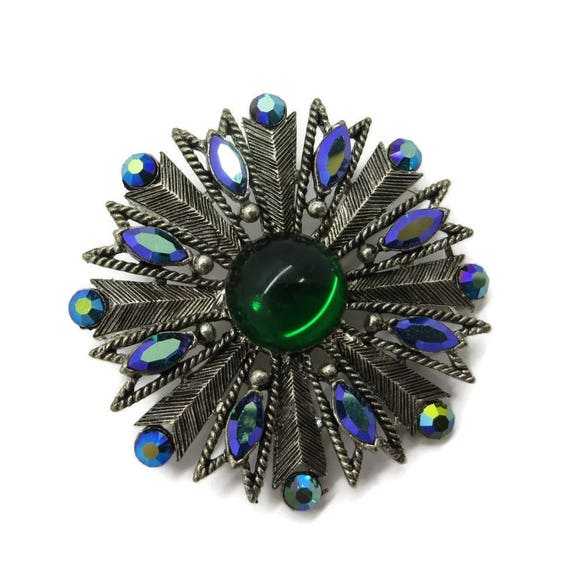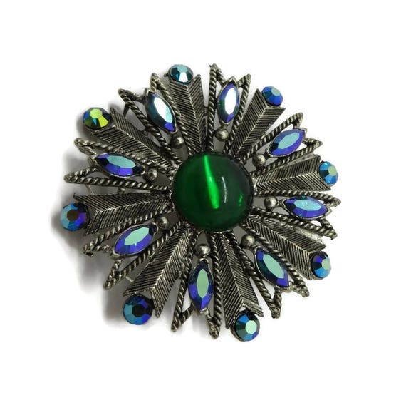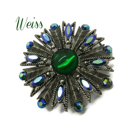 15% OFF coupon on Vintage Emerald Rhinestone Brooch, Signed Weiss Green and AB Rhinestone Silver Tone Brooch by LeesVintageJewels