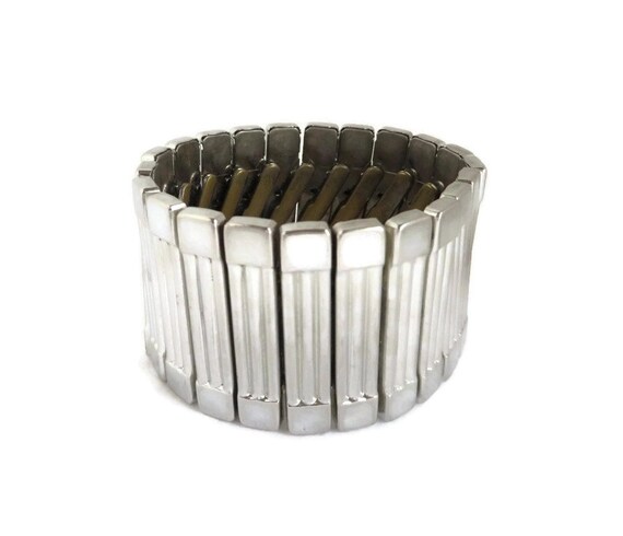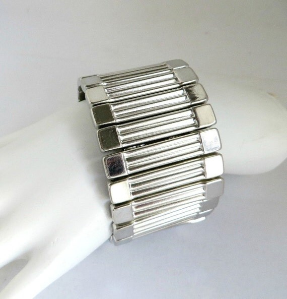 15% OFF coupon on Vintage Expansion Bracelet | Chunky Silver Tone Bracelet - Ribbed Wide Band Cuff by LeesVintageJewels