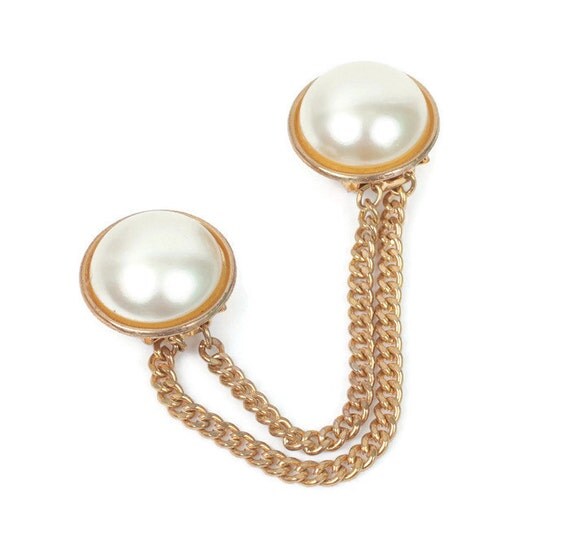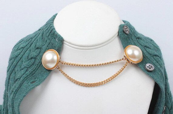 15% OFF coupon on Vintage Faux Pearl Sweater Guard Gold Tone
