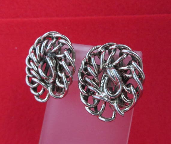 15% OFF coupon on Vintage Freirich Chain Link Earrings - Silver Tone Earrings, 1960s Clip-ons by LeesVintageJewels