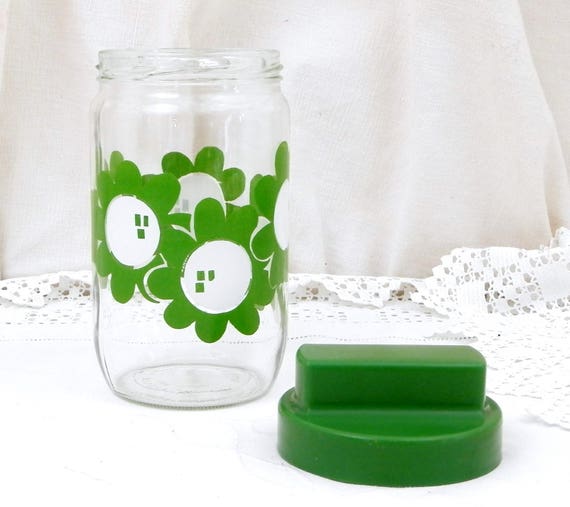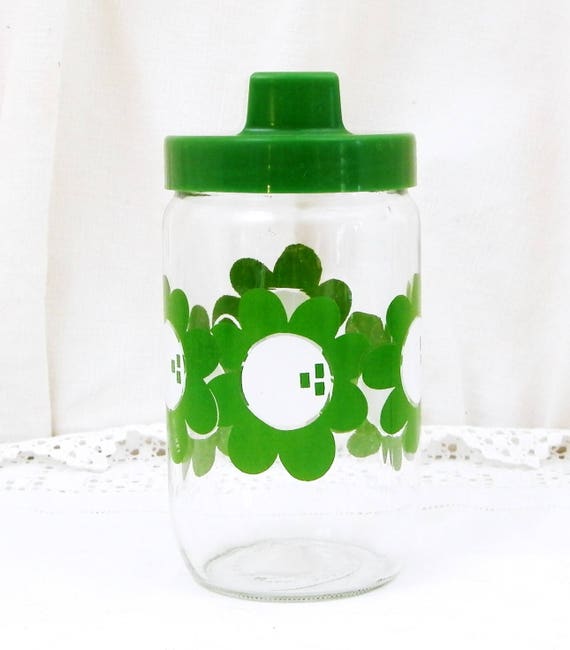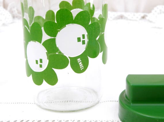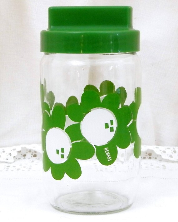 20% OFF coupon on Vintage French Airtight Henkel Glass Storage Jar with Green Flower Design, 1960S Vintage Kitchen Decor, Retro Kitchenalia from France by VintageDecorFrancais
