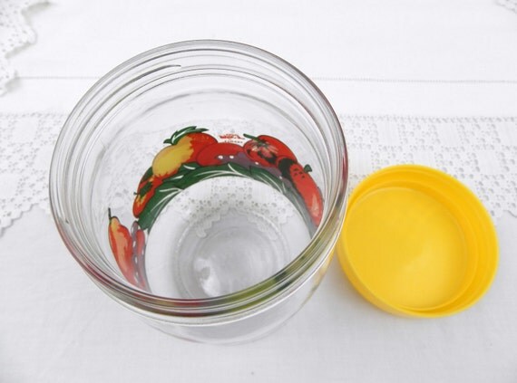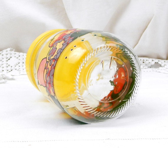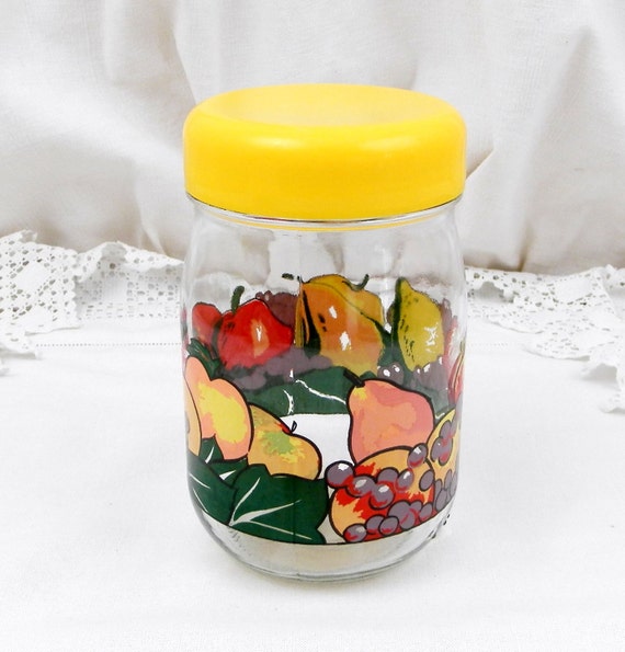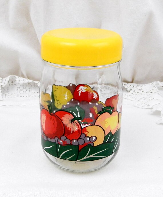 20% OFF coupon on Vintage French Airtight Le Parfait Storage Jar with Retro Printed Fruit Pattern and Yellow Lid, 1 L 1960S Retro Home Interior Kitchenware by VintageDecorFrancais