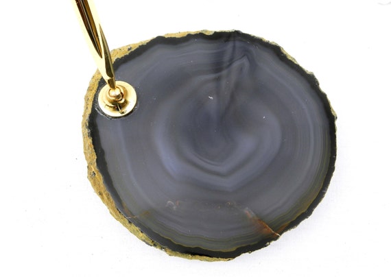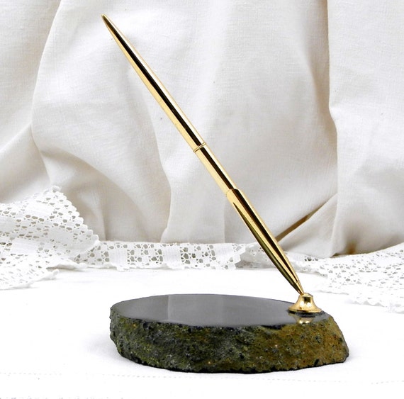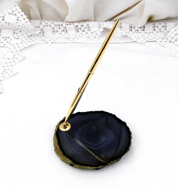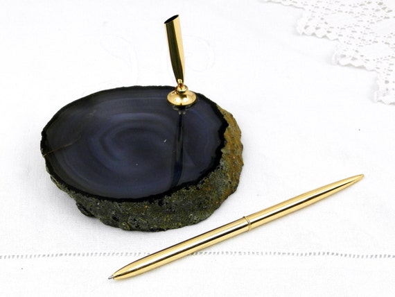20% OFF coupon on Vintage French Blue Veined Agate Onyx Nodule Stone Slab Pen Holder, Retro Mid Century Office Decor, Semi Precious Rock Desk Tidy, by VintageDecorFrancais