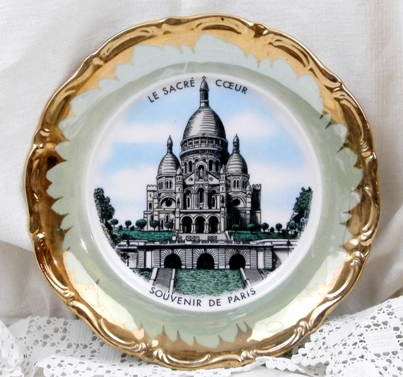 20% OFF coupon on Vintage French Bone China Souvenir Wall Plate from Paris with the Sacré Coeur Montmartre Chateau Chic, French Decor, Vacation, Basilica by VintageDecorFrancais