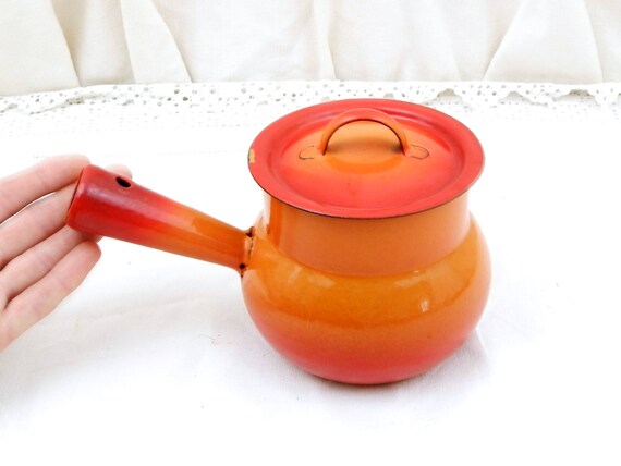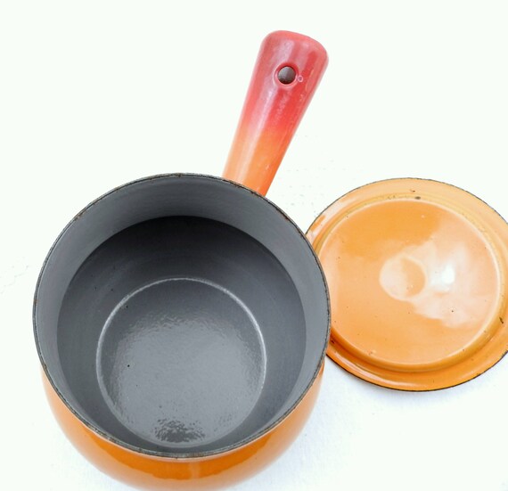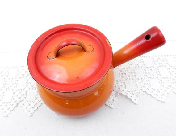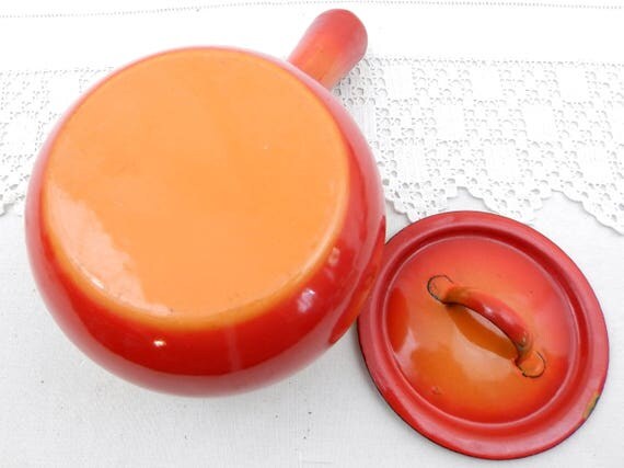 20% OFF coupon on Vintage French Bright Orange Enamelware Pot Belly Pan with Lid, Enamel Sauce Pan, Cooking Pot, 1960s Retro, Kitchen, Interior, Kitchenware by VintageDecorFrancais
