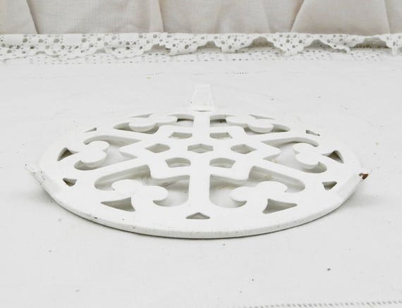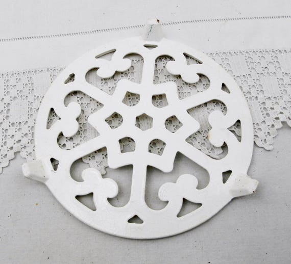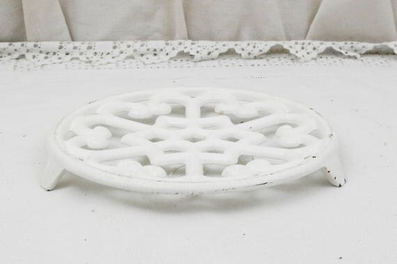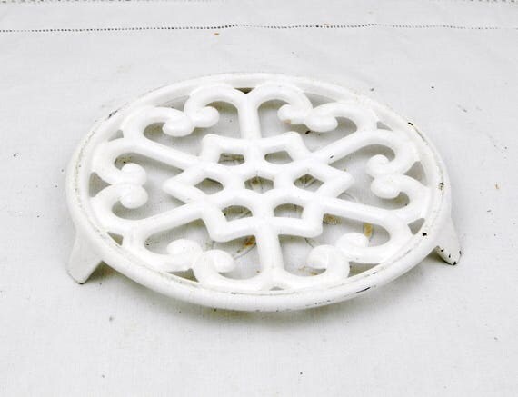 20% OFF coupon on Vintage French Cast Iron White Enamelware Trivet, Hot Plate, Heat Mat, Rustic, Shabby Cottage Kitchen, French Country Decor, Farmhouse by VintageDecorFrancais