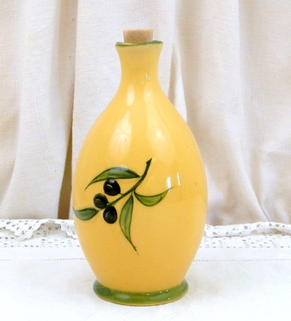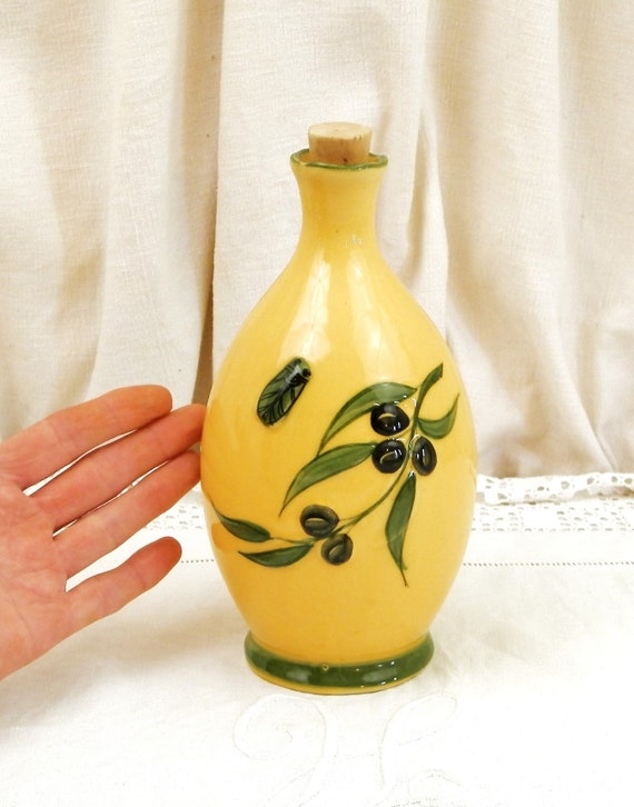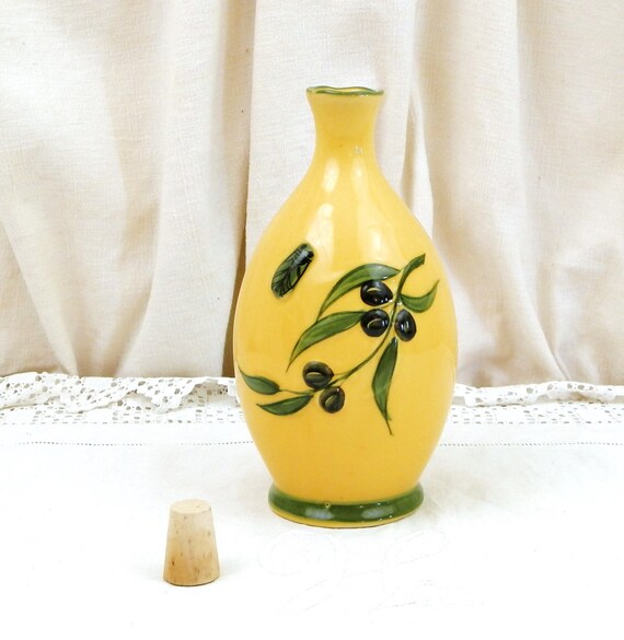 20% OFF coupon on Vintage French Ceramic Yellow Provencals Mediterranean Olive Oil Bottle Branch and Cicada Pattern, Traditional Pottery South of France by VintageDecorFrancais