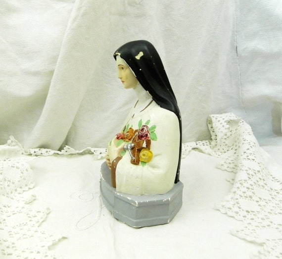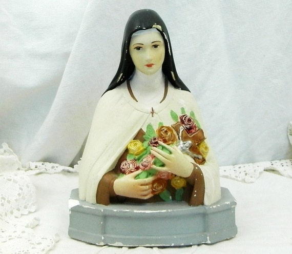 20% OFF coupon on Vintage French Chippy Saint Therese de Lisieux Normandy Bust, Catholic St Theresa Plaster of Paris Statue, Religious Sculpture from France by VintageDecorFrancais