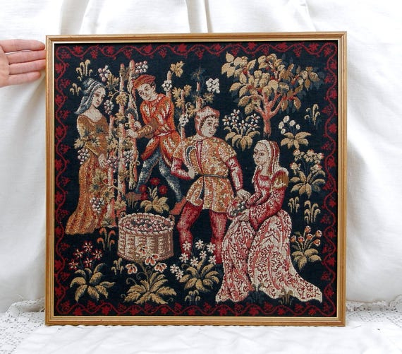 20% OFF coupon on Vintage French Framed Medieval Style Reproduction Tapestry "Les Vendanges", Grape Harvest, Wall Hanging, Medieval Decor, Castle, France, by VintageDecorFrancais