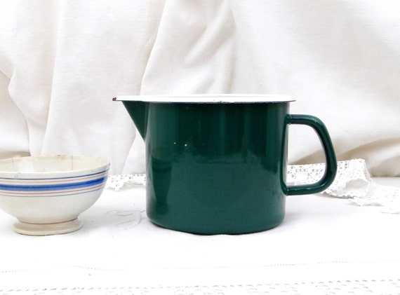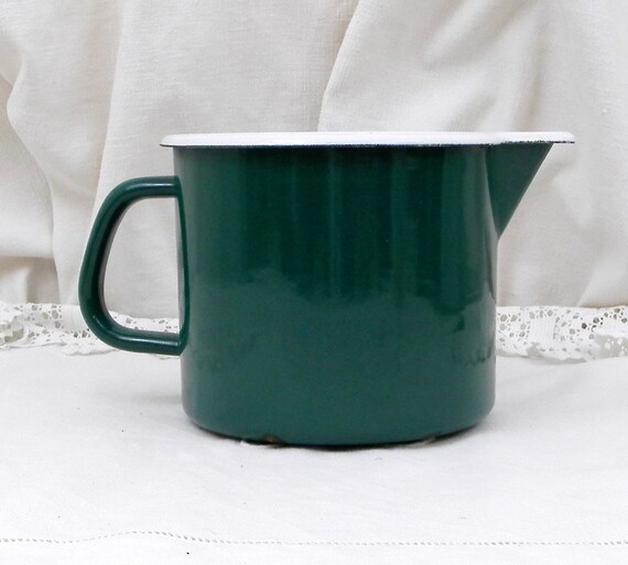 20% OFF coupon on Vintage French Green and White Enamelware Milk Pitcher / Jug 1.5 Liters 0.4 Gallon, French Country Farmhouse Decor, Kitchenelia, Kitchenware by VintageDecorFrancais