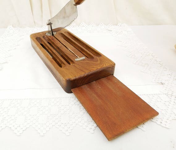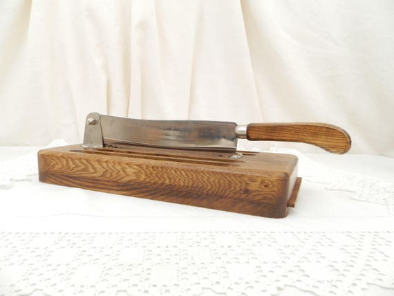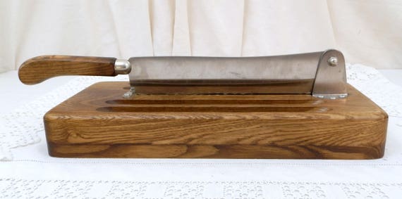 20% OFF coupon on Vintage French Guillotine Bread Knife with Crumb Collecting Tray Made of Walnut Wood and Stainless Steel, Baguette Cutting Board, Kitchen by VintageDecorFrancais