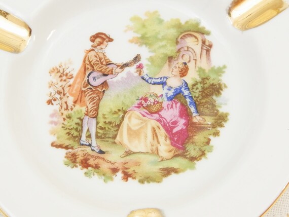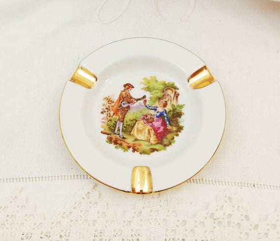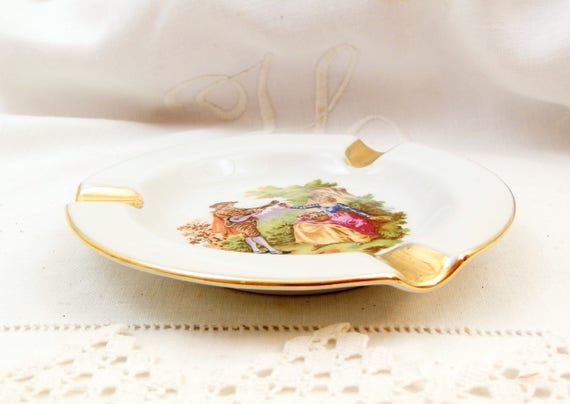 20% OFF coupon on Vintage French Limoges Porcelain D'Art Ceramic Ashtray with Romantic Scene, White Gold Glaze, Bone China Ash Tray from France, Trinket Bowl by VintageDecorFrancais
