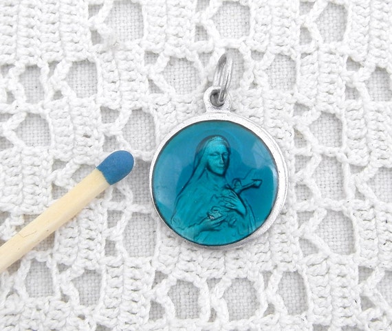 20% OFF coupon on Vintage French Medal Religious Medal Saint Teresa with Turquoise Blue Enamel / St Therese Religion / Christian Catholic Charm Medal Lisieux by VintageDecorFrancais