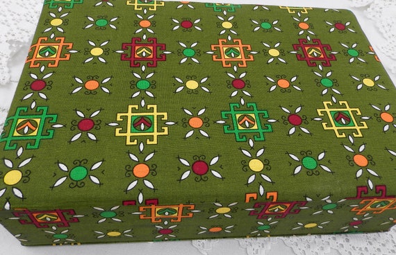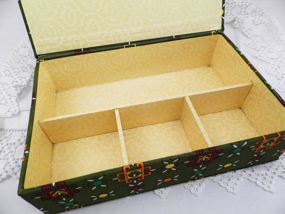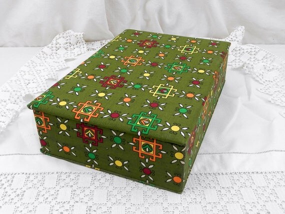 20% OFF coupon on Vintage French Mid Century 1960s Green Fabric and Wooden Sewing Box Large Size with Compartments, Retro Crafting, Haberdashery, Dress Making by VintageDecorFrancais